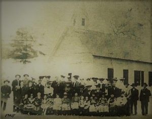 Over the years, the church family carried on under several names. In 1859, it became Holly Springs Church, and by 1905 it was known as Old Waverly Baptist, as seen in an old church family portrait. During those years, more families joined in—names like Moffett, Ellisor, Welsh, Rockett, Jenks, Frazier, and Jordan became part of our growing fellowship.